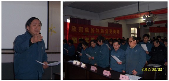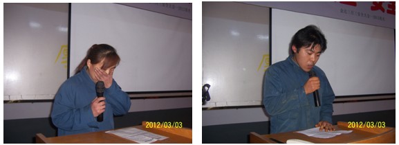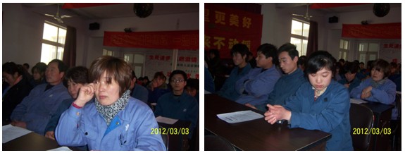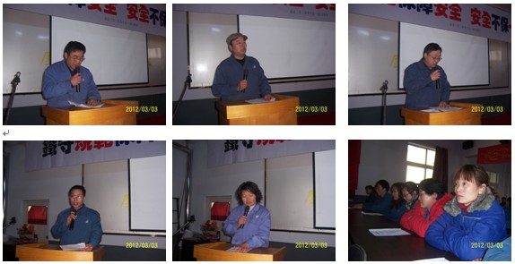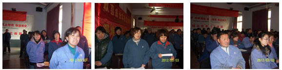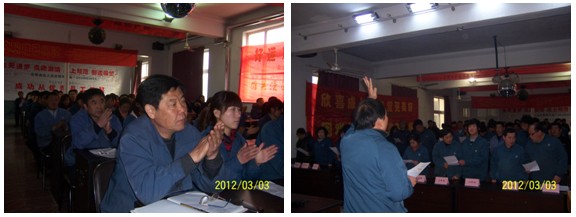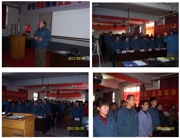 阳春三月,万物生机。3月3日下午:4:00“2012年度安全大会”在公司三楼会议厅举行。会议在激情豪迈的《真心英雄》歌声中开始。会前总经理满怀激情无限担当带领大家互动演练“金达文化大气场”,使大家群情激昂进入会议境界。本次大会共六项议程: 一、总经理主持,开场白《会议为什么与做什么?》,简要地讲述了本次安全大会的目的和任务“重视安全”“一起清醒一起改变一起进步”。 二、公司公关总监高洪谊作了《今年安全目标与去年安全总结》的工作报告。 三、分级签订安全目标责任书。 四、大会发言:韩冬梅、程鹏、赵宝林、刘学弟、张彬、汤金、孙利英,他们先后从不同的角度,用“切肤之痛”、切身感受、真真切切作了安全生产的重要性和必要性的感人讨论。 五、总经理做了“八项安全承诺”,并做坚决要求“必须改变”的演讲: “变被动为主动,变约束为自觉,变懈怠为积极” 六、金达人积极响应齐声庄严承诺:“主动改变铁守规范保障安全积极创造” 我们金达人向苍天、向父母、向家庭郑重承诺,我们保证做到: ---绝不忘记苍天大地的恩惠,绝不做有心违反自然规律的事情! ---绝不忘记对父母及家庭的责任,严格遵守一切安全规范! ---如果我有违反规则行为,愿意接受处罚并积极改正。因为我深知严格管理是真爱,放任自流是大害! ---我要好好学习工作规范,主动改变不良习惯,建立规范安全的好习惯,做安全合格的职业人,做一流的制造人! ---我要担当责任、积极进取、铁守规范保障安全、主动进步天天向上、携手互助共同提高,一起创造金达的美好! ---请老天爷明眼、请父母及家人们相信我能做到。 我是金达人“……”。 《明天会美好》歌声响起,人们怀着“祝愿金达明天更美好”的期盼,坚定地向前走去! 大会前程总作了精心深度策划,一个小时会议互动沟通、气氛浓烈、震动心寰、感受深刻。程总的“承诺与要求”和代表的精彩发言引发出了大家的“安全人生的共鸣与改变的向往”,铿锵有力的用心承诺发向了天际、每一个家庭,且深深种在了每一个人心里….,人们心灵深受了震撼,激发起了强烈的责任。会议达到了“一起觉醒、一起改变、一起进步”的会议目的。